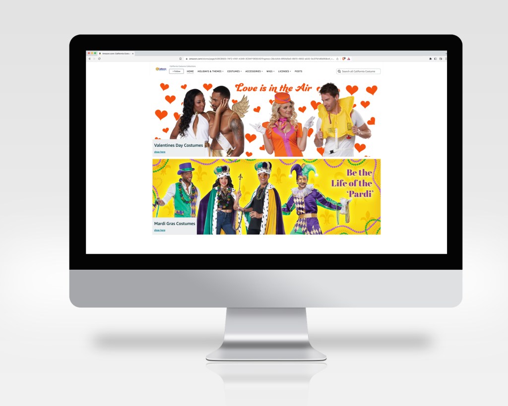 California Costumes relied on in-person events to attract buyers for their product. In order to create visual appeal, they commissioned a series of poster-style banners for their booth at their yearly trade show in Las Vegas. Through clever and aesthetic layout and graphics, buyers would be invited to invest in new costume lines for the upcoming season.